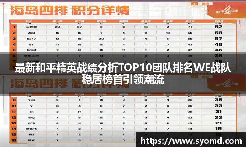 近年来,随着《和平精英》的火热发展,电子竞技逐渐成为年轻人追捧的热点。各大战队在这个舞台上拼搏,为了争夺更高的荣誉与排名而不断努力。在最新发布的战绩分析中,我们看到WE战队凭借其出色的表现稳居榜首,引领整个行业的发展潮流。本文将从团队实力、成员配合、战术执行以及未来展望四个方面对当前TOP10团队排名进行详细剖析,以期为读者提供更全面的理解和见解。